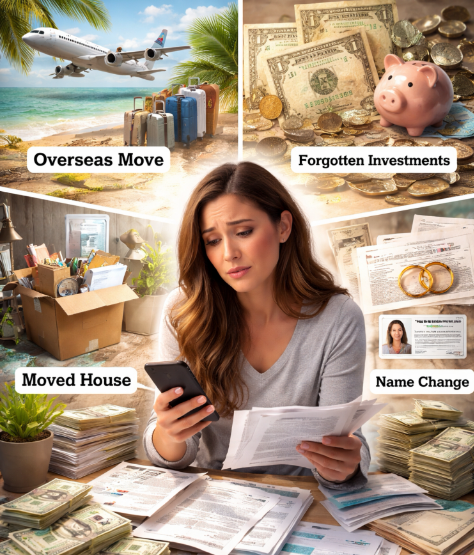 You may have changed your name due to marriage, divorce, or personal reasons and not updated it with financial institutions. This can prevent organisations from matching accounts to you, causing funds to become unclaimed.
